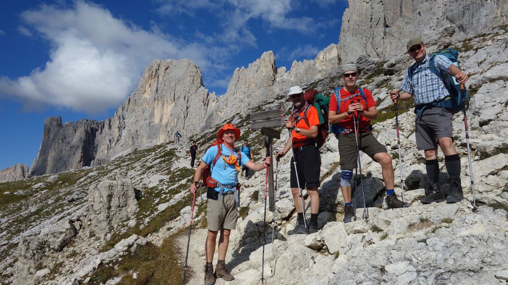 Blick vom Tschagerjoch-Abstieg zur Westwand der Rosengartenspitze (Rosengarten 2022)